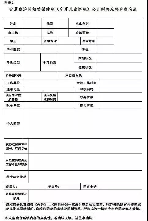 報(bào)名者填寫《寧夏婦幼保健院(寧夏兒童醫(yī)院)公開招聘應(yīng)聘者報(bào)名表》,要求內(nèi)容準(zhǔn)確,回復(fù)至人事科郵箱nxfybjyrsz@163.com。