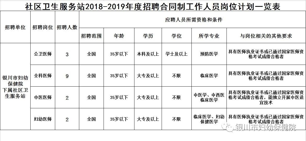 2018寧夏銀川市婦幼保健院社區(qū)衛(wèi)生服務站招聘16人公告