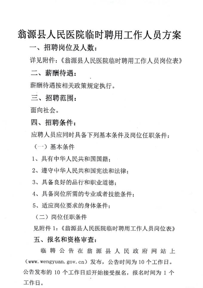 原標(biāo)題:2018年翁源縣人民醫(yī)院臨時聘用工作人員方案