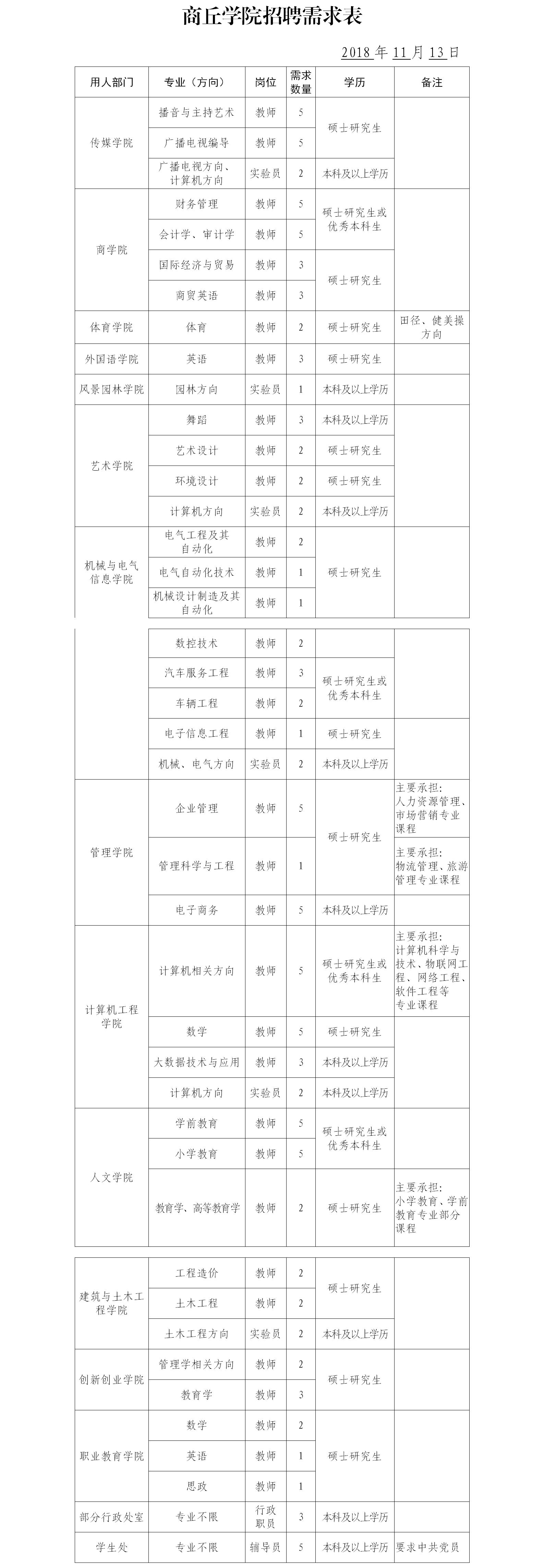 原標題:商丘學(xué)院各專業(yè)師資需求表