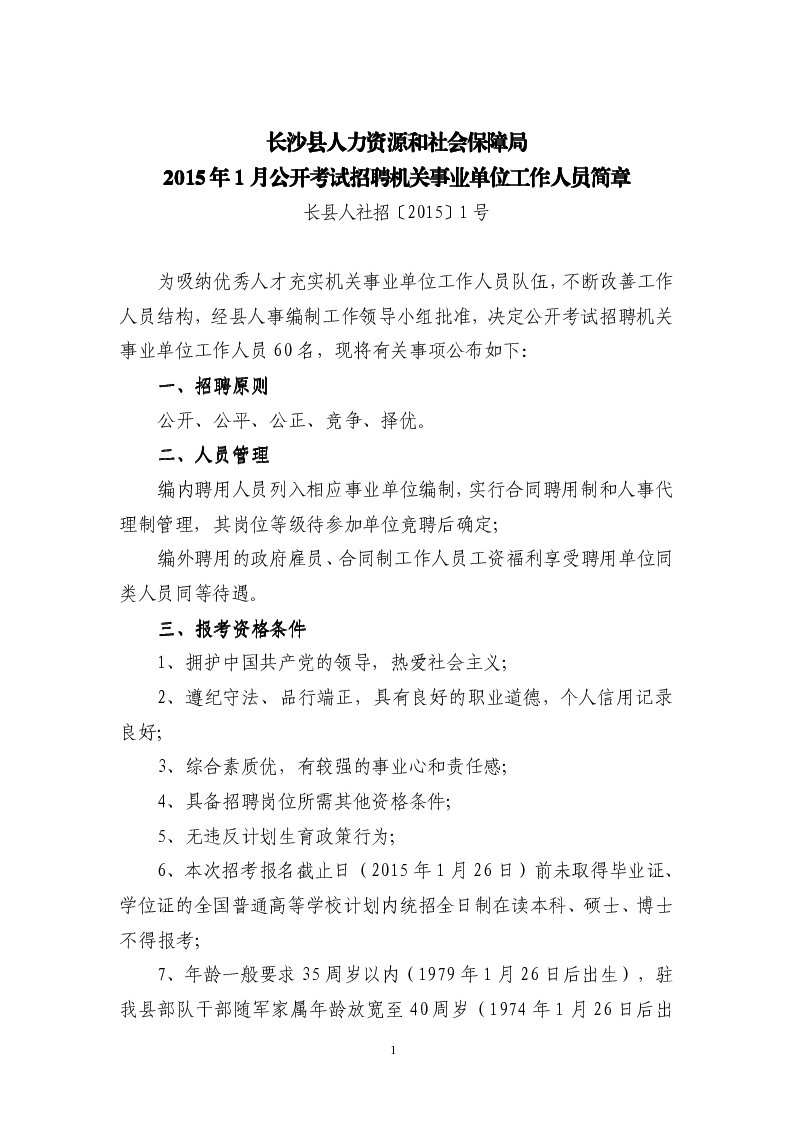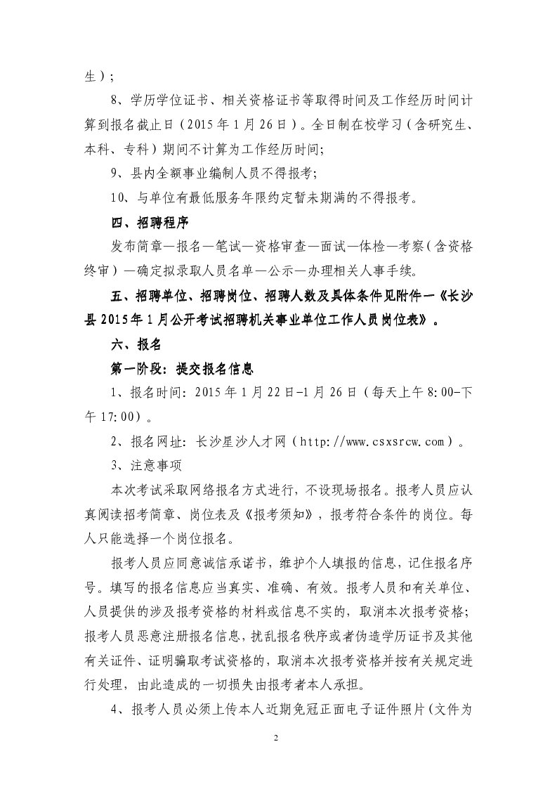2015年湖南省長沙公開考試招聘機關事業(yè)單位工作人員公告