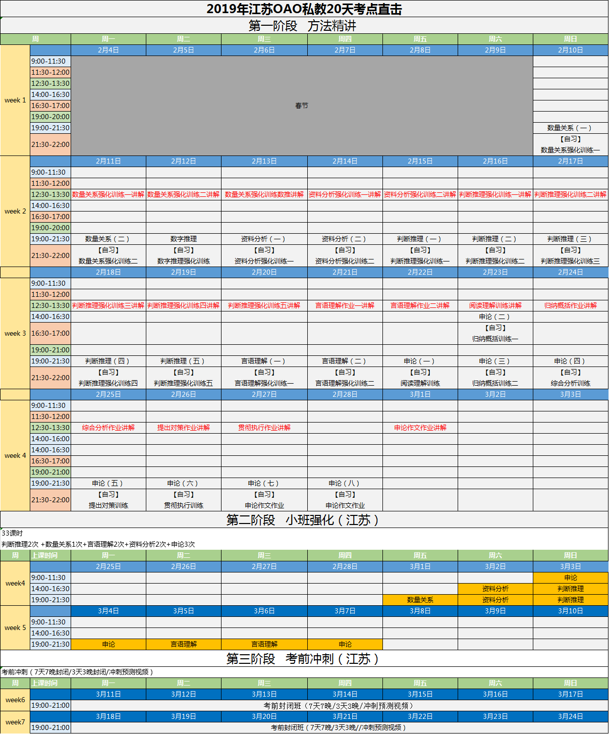 2019年江蘇省考20天考點(diǎn)直擊直播課程安排表