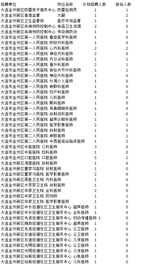 根據(jù)《2015年大連金州新區(qū)部分事業(yè)單位公開招聘工作人員公告》規(guī)定和報(bào)名情況,由于此次公開招聘中有55個(gè)招聘崗位的有效報(bào)考人數(shù)未達(dá)到3:1比例的規(guī)定,現(xiàn)將取消和縮減崗位情況公告如下: