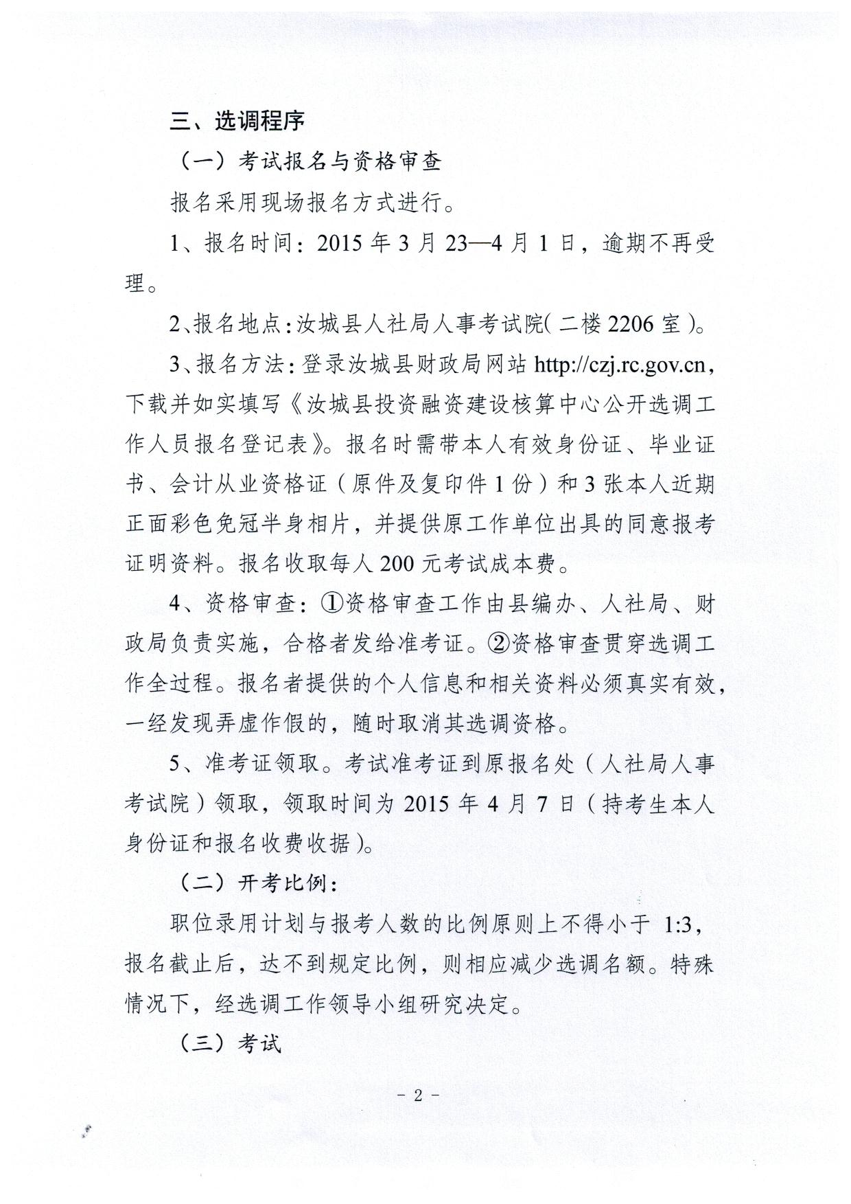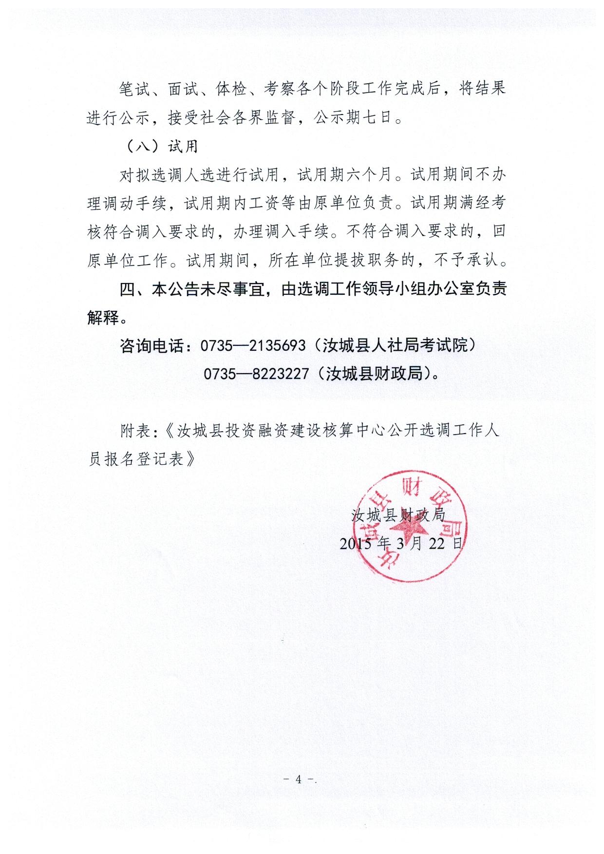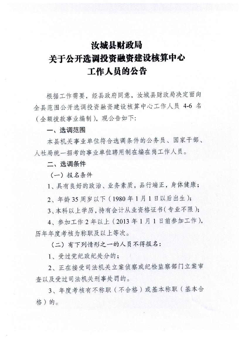2015年湖南省汝城縣財(cái)政局投資融資建設(shè)核算中心選調(diào)公告