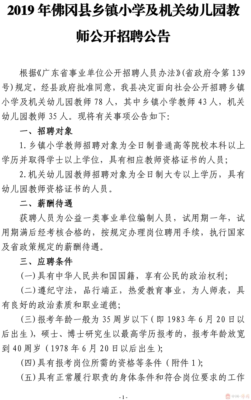 原標題:2019年佛岡縣鄉(xiāng)鎮(zhèn)小學及機關幼兒園教師公開招聘公告