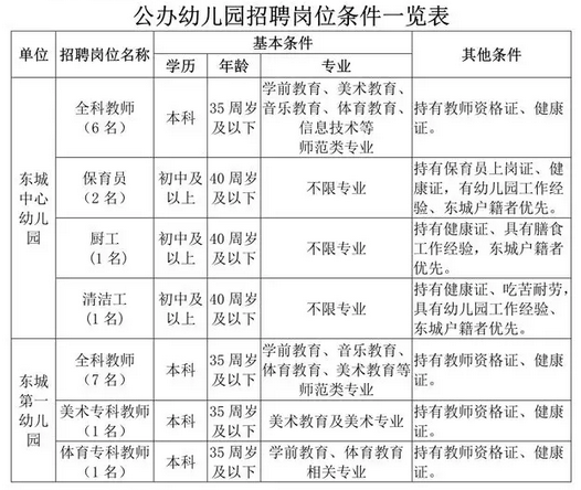 東莞市東城中心幼兒園,東城第一幼兒園是隸屬東城街道辦事處的兩所公辦園,因工作需要,擬面向社會公開招聘15名聘用教師,2名保育員,1名廚工,1名清潔工。