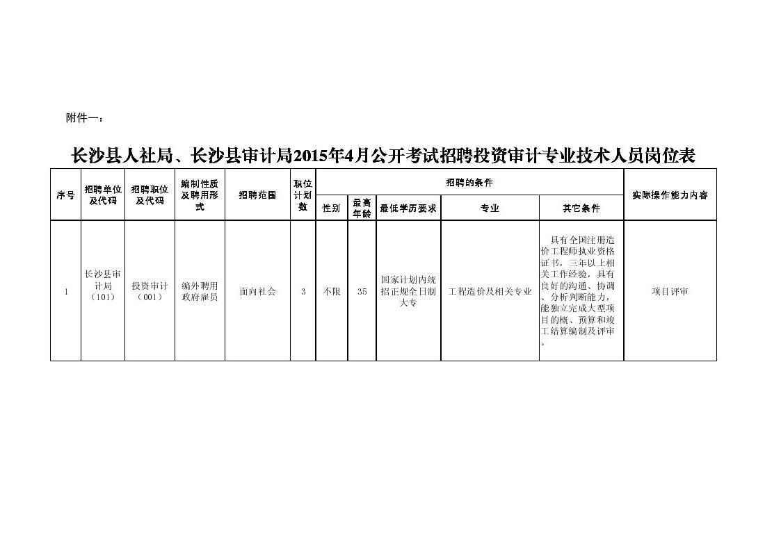 原標題:長沙縣人力資源和社會局、長沙縣審計局2015年4月公開考試招聘投資審計專業(yè)技術(shù)人員簡章