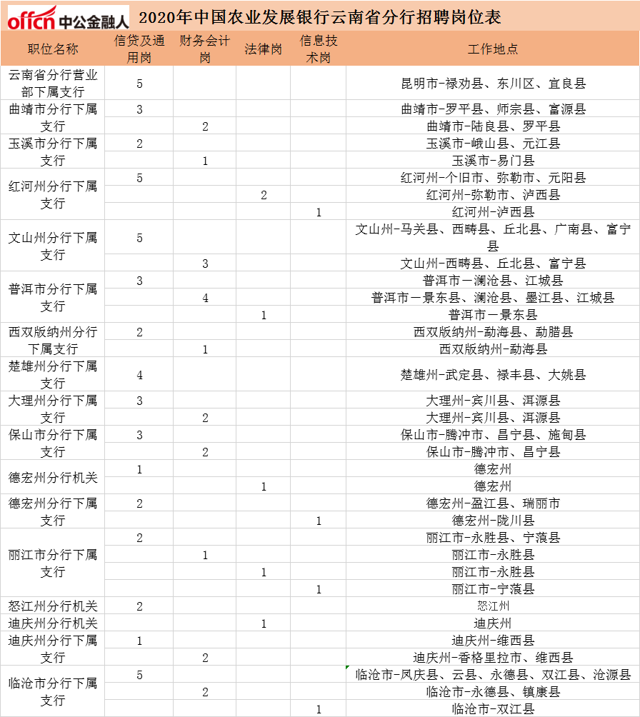 2020中國農(nóng)業(yè)發(fā)展銀行云南分行校園招聘78人公告