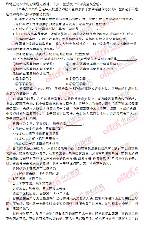 2014上海市公務(wù)員考試行測(cè)(B類)