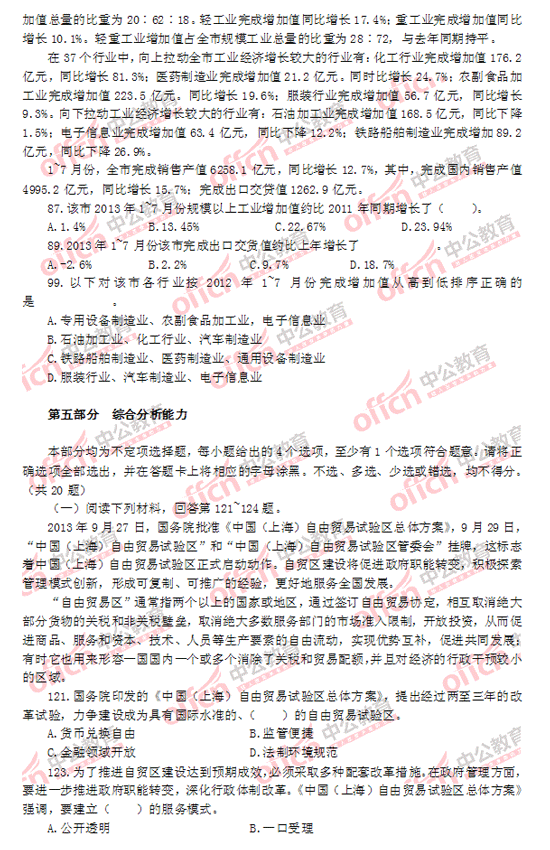 2014上海市公務(wù)員考試行測(cè)(A類)