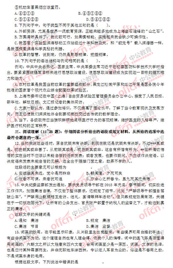 2014上海市公務員考試行測(A類)