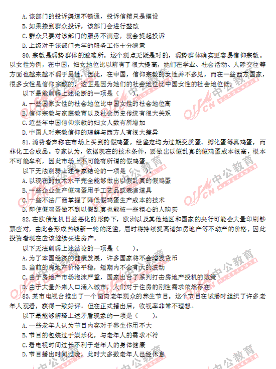 2012年廣東縣以上公務員考試行測