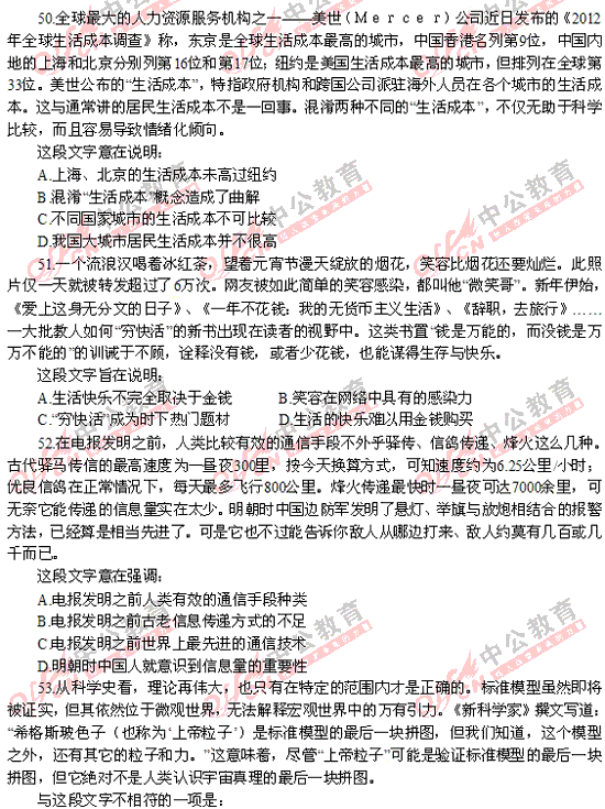 2012年福建秋季省考行測