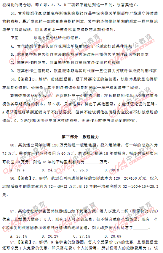 2011上海市公務(wù)員考試行測(cè)(B類)部分答案及解析
