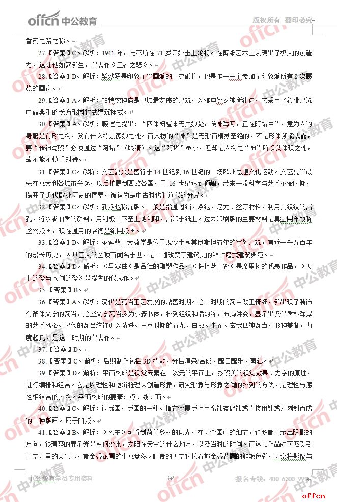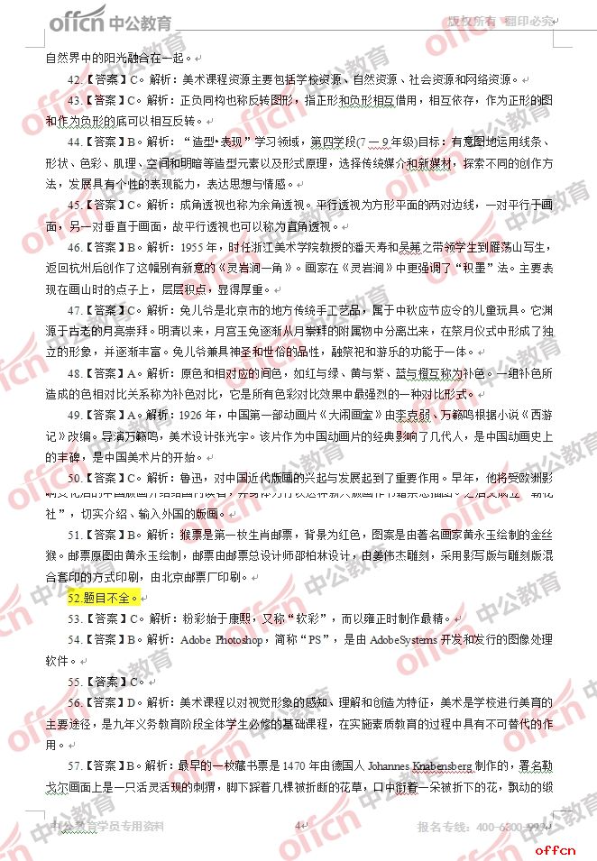 2017年江西教師招聘《初中美術(shù)》試題答案及解析