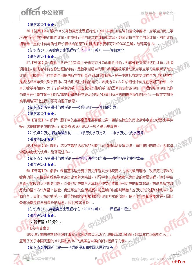 2017年江西教師招聘《初中歷史》試題答案及解析