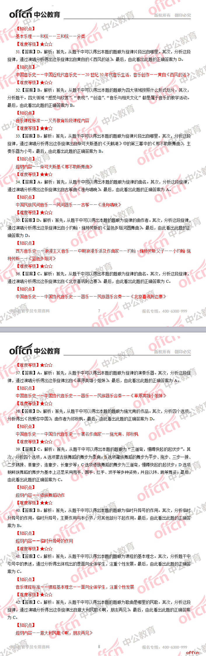 2017年江西教師招聘《小學(xué)音樂(lè)》試題答案及解析