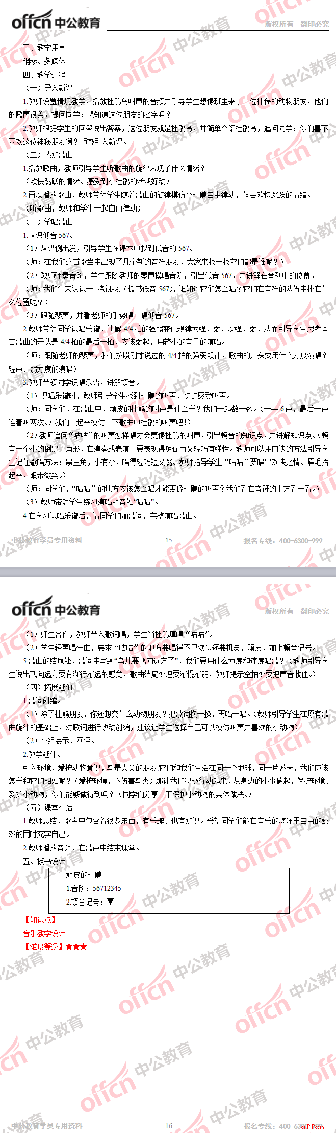 2017年江西教師招聘《小學(xué)音樂》試題答案及解析