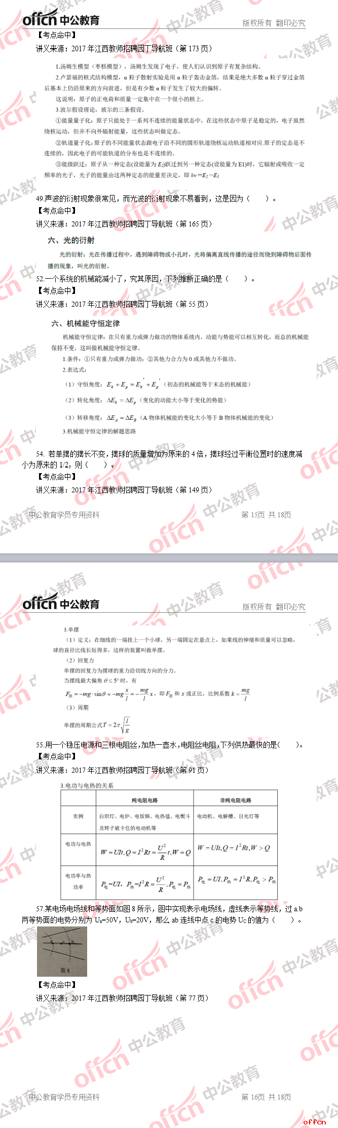 2017年江西教師招聘《高中物理》試題答案及解析
