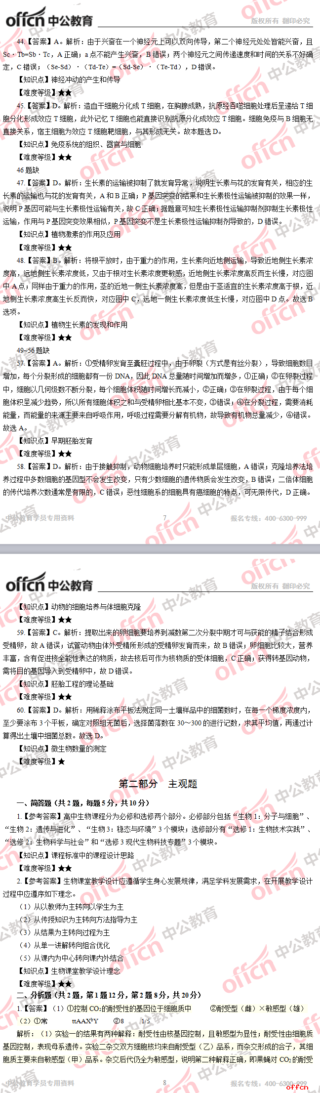 2017年江西教師招聘《高中生物》試題答案及解析