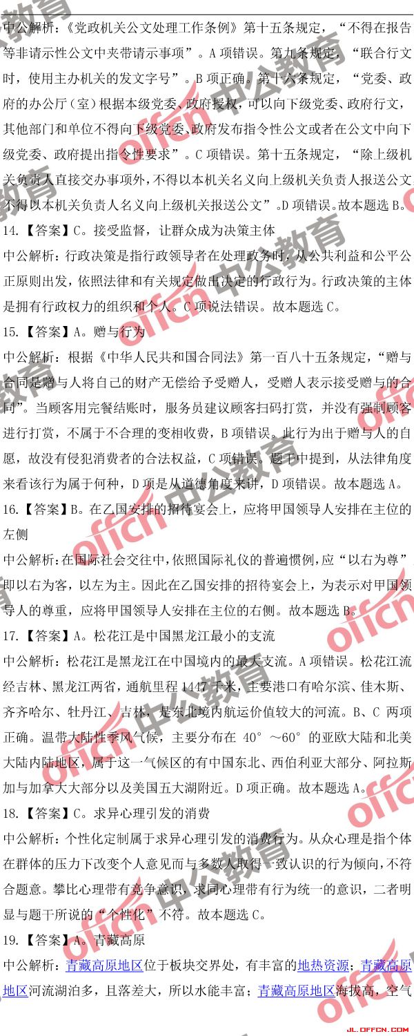 2018吉林公務(wù)員考試行測(甲)歷年參考答案及解析