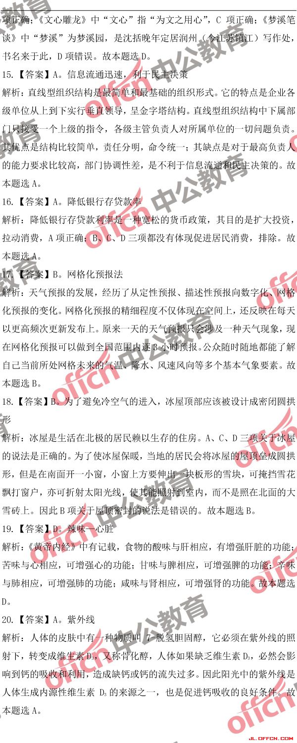 2018吉林公務員考試行測(乙)歷年參考答案及解析