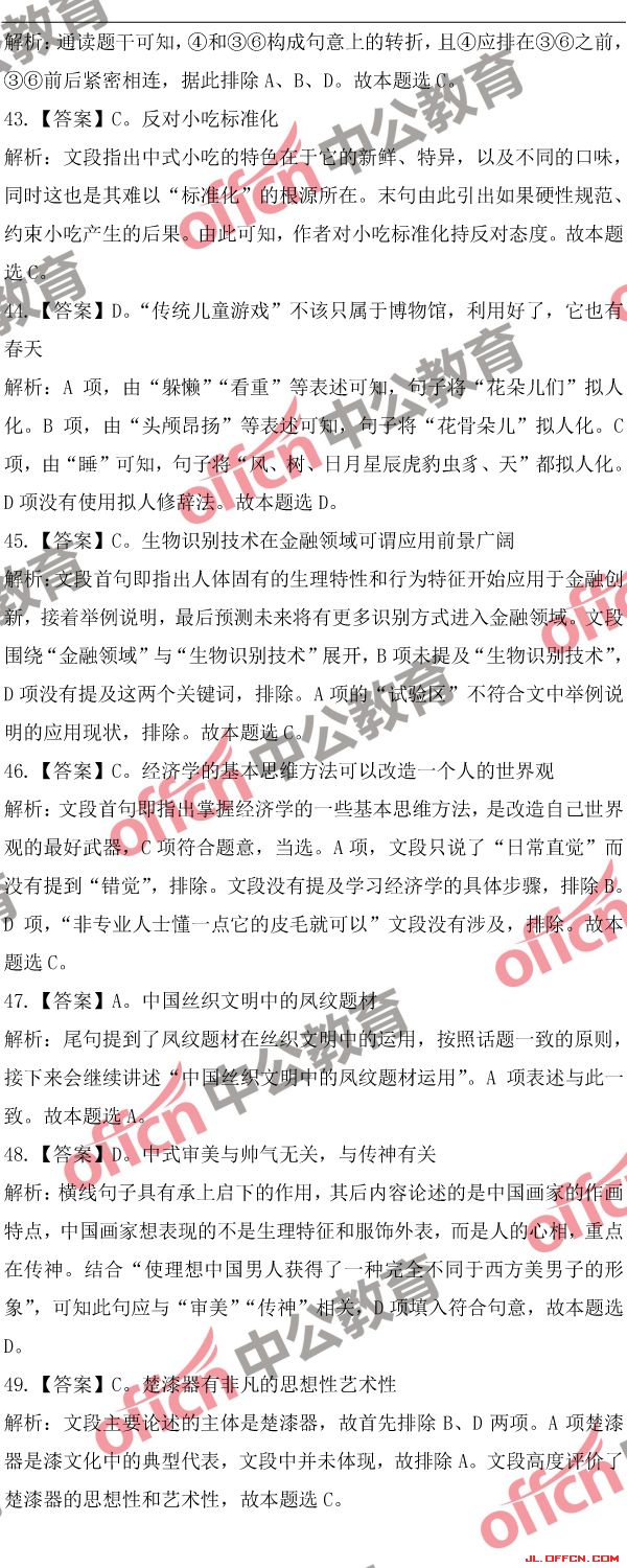 2018吉林公務員考試行測(乙)歷年參考答案及解析