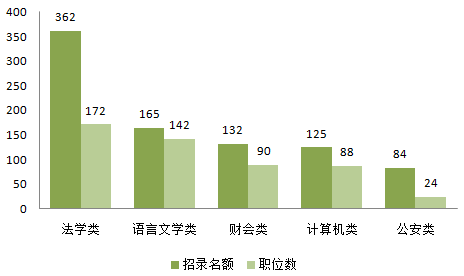 在本次招錄考試的專業(yè)要求中,對(duì)法學(xué)類、語言文學(xué)類、財(cái)會(huì)類、公安類、計(jì)算機(jī)類等方面的人才需求比較旺。尤其是法學(xué)類,本次考試的需求為362個(gè)名額、172個(gè)職位,以性優(yōu)勢(shì)占據(jù)頭把交椅。職位表中有些專業(yè)的表述為某類別,并沒有具體到某個(gè)具體專業(yè),如果考生對(duì)自己的專業(yè)所屬類別不清楚的話可以參看《2016海南省考試錄用公務(wù)員專業(yè)目錄》,以免因?yàn)閷I(yè)不符未通過審核。