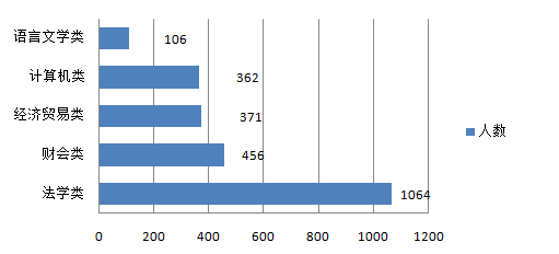 本次招錄法檢系統(tǒng)是招錄大戶,主要招錄有法律教育背景的人才,因此,法學(xué)類專業(yè)成為本次招錄中人氣的專業(yè),共招錄1064人,其次是財會類專業(yè),招錄456人,經(jīng)濟(jì)貿(mào)易類與計算機(jī)類專業(yè)基本持平,有這些專業(yè)背景的考生在選職位時范圍比較廣,機(jī)遇較多。