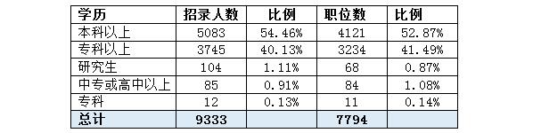 三、逾半數(shù)職位要求起點學(xué)歷為本科