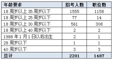 本次招錄年齡跨度較大,從18周歲到40周歲都有機(jī)會(huì)參加本次考試,七成職位對(duì)年齡的要求集中在18周歲以上35周歲以下這一年齡段,但也有兩成職位要求再18周歲到30周歲這一年齡段,還14個(gè)職位要求在25周歲以下,中公網(wǎng)校專(zhuān)家分析,這些職位集中在公安系統(tǒng)中的特警職位,對(duì)考生本身的體格要求較高,將年齡放寬至40周歲的職位均要求碩士及以上學(xué)歷,這也是考慮到該群體的特殊情況而設(shè)定。整體而言,公務(wù)員考試招錄呈現(xiàn)年輕化特色,對(duì)于年齡偏小的考生機(jī)會(huì)更大,選擇面更廣。