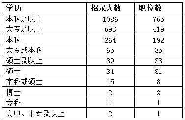 在職位表的“學歷一欄”中各招錄單位對學歷進行了細致劃分,縱向來看,從高中延伸至博士學歷,從橫向來看,囊括了全日制高校以及非全日制學歷。本科及專科學歷最受青睞。但并不是學歷越高優(yōu)勢越明顯,部分職位將學歷要求僅限制在某一層面,有的僅要求本科學歷,有的僅要求大專學歷,有的僅要求碩士,有的僅要求博士,這說明招錄的專業(yè)化趨勢比較明顯,招到與崗位相匹配的人才是公務(wù)員考試宗旨和目的所在。