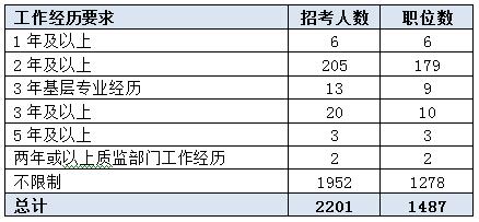 本次考試招錄對(duì)考生的基層工作經(jīng)歷比較細(xì)致,年數(shù)比較具體,且對(duì)工作經(jīng)歷進(jìn)行具體劃定,部分職位要求必須是基層專(zhuān)業(yè)經(jīng)歷,還有2個(gè)職位要求必須是質(zhì)監(jiān)部門(mén)的工作經(jīng)歷,由此可看出,專(zhuān)崗招專(zhuān)人是大勢(shì)所趨。