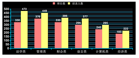 本次考試共有1054個(gè)職位不限專業(yè),共招錄1636人,占總?cè)藬?shù)的45.3%。法學(xué)類、管理類、財(cái)會(huì)類、語(yǔ)言類、計(jì)算機(jī)類、經(jīng)濟(jì)類為本次考試招錄的熱門專業(yè)。