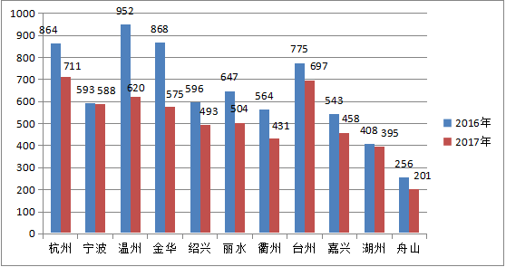 而對(duì)于浙江省公務(wù)員考試中,各地市的招錄,從數(shù)據(jù)上,也有遞減趨勢(shì)。具體數(shù)據(jù),如下圖: