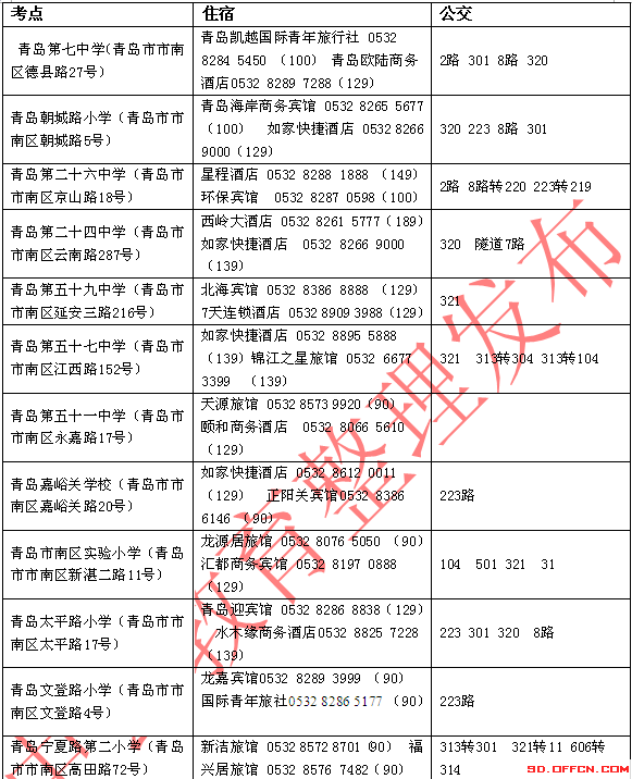 2015年山東【青島】公務(wù)員考試考場考點(diǎn)指南