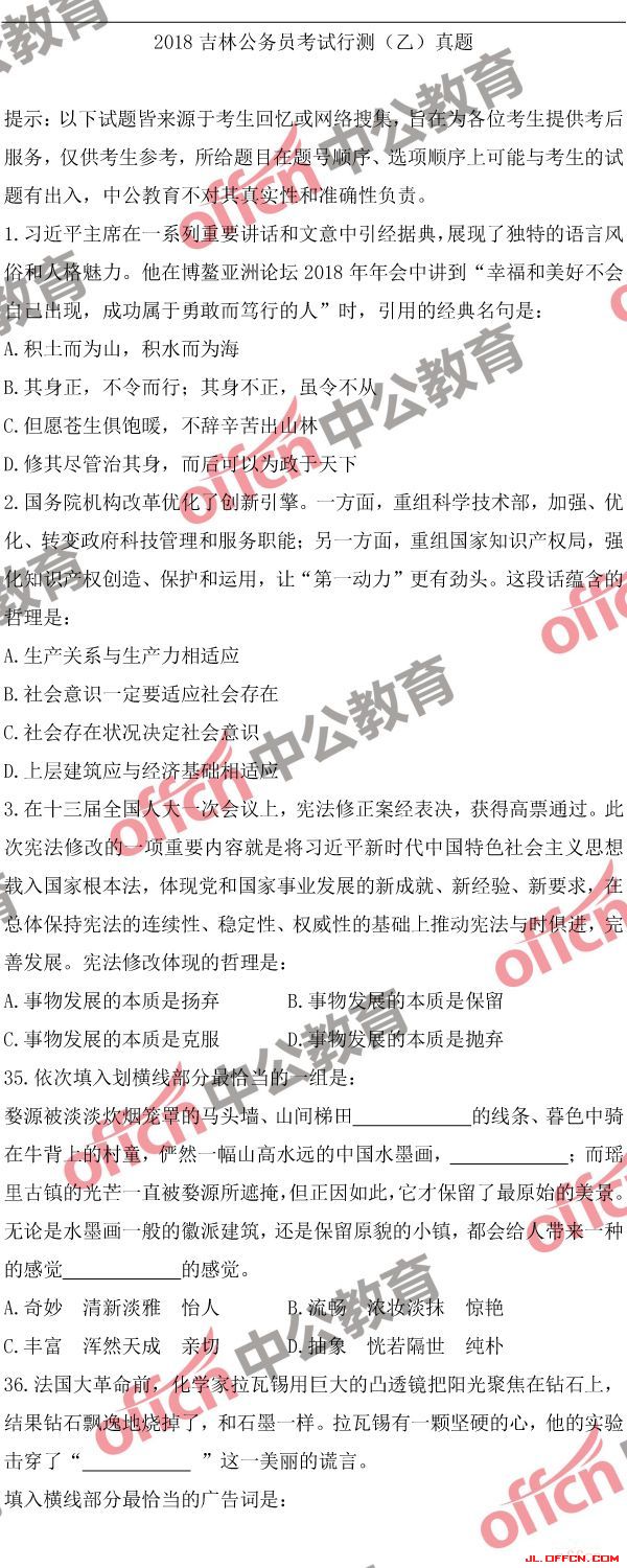 2018吉林省公務(wù)員考試行測(cè)歷年(乙)