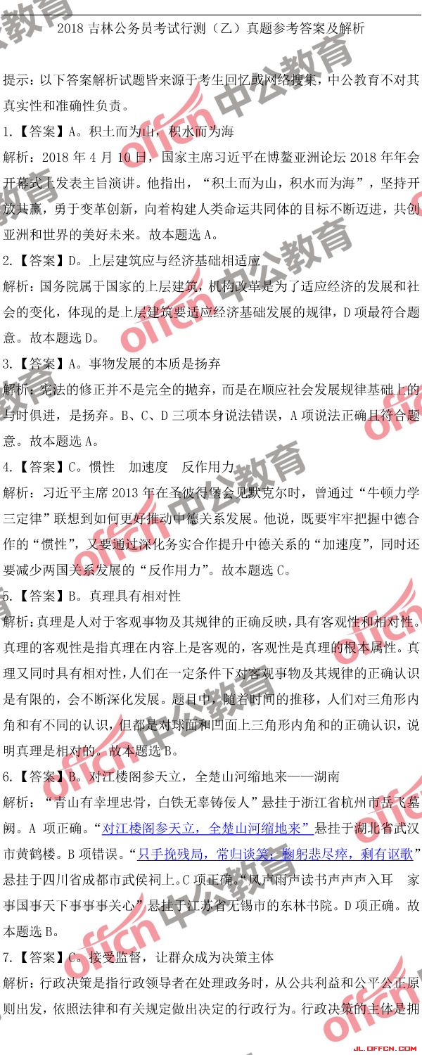 2018吉林公務(wù)員考試行測(乙)歷年參考答案及解析
